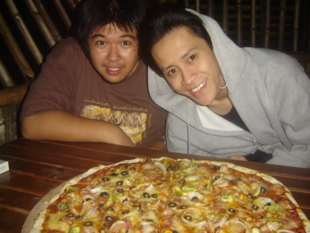 Just to show how big the Pizza was, Mike and Smile clowned around a bit.