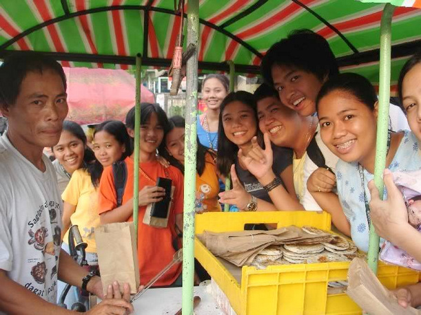 As The Bacolod Food hunters drove by the University of Saint Lasalle their attention was drawn towards a group of people surrounding a vendor’s food cart. The Bacolod Food Hunters parked their car a few feet away and as they walked towards the cart, they noticed people walking away with brown paper bags and munching on what appeared to be white papery discs.
