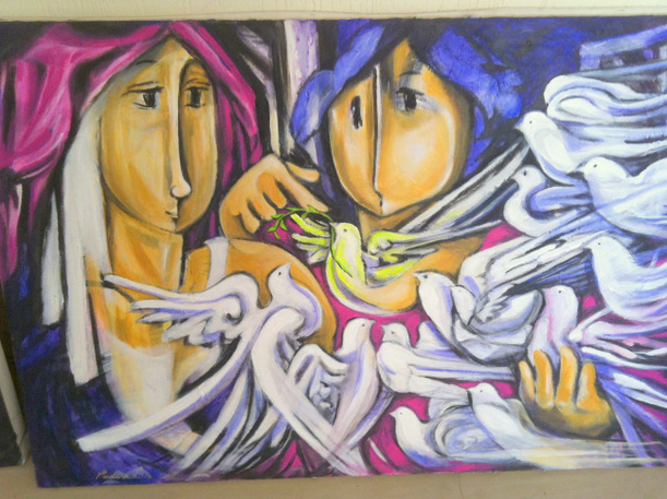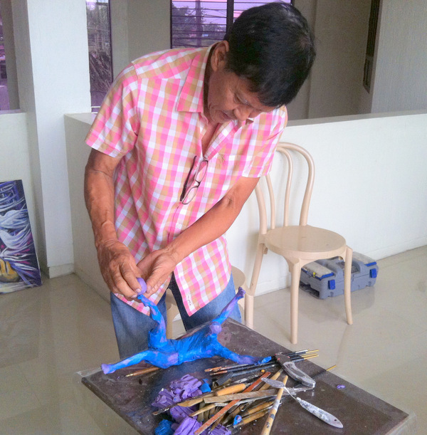 P: Well I usually work with a lot of media. I do sculpting, I work with metal, clay and I paint. I do oil, acrylic, watercolor, pen and ink. I mostly do mixed media. I was a professor in La Consolacion College several years ago..