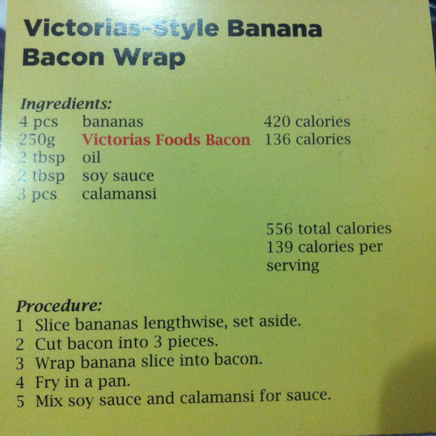 The next recipe was a dish using Victorias Bacon and bananas! This dish is perfect for canapes or for breakfast or light snacks. The bacon went well with the banana and the taste was simply divine! I’m proud to say that Victorias Bacon isn’t salty at all unlike the bacon of other competitors that tries to over compensate for the poor quality of meat by over seasoning their bacon.