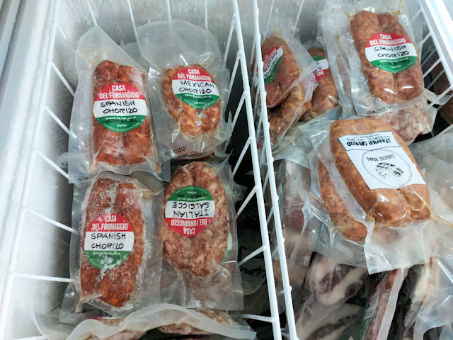 The interior of Casa Del Formaggio and Capriciosso Deli Ristorante is part showroom, part restaurant. It’s a small space. There’s two tables inside and two tables outside for al freso dining.