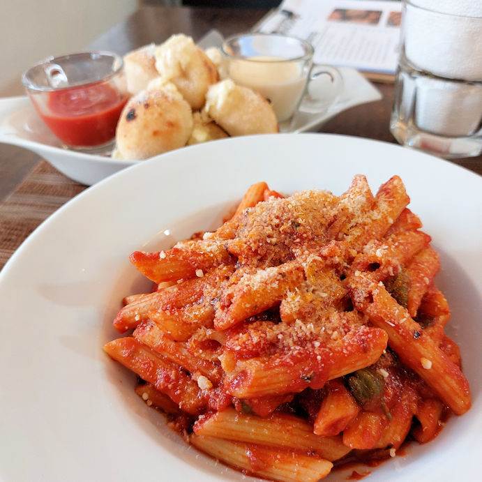 Please try out Capriccioso Deli Ristorante. They’ve got a lot of delicious food on their menu besides pasta. It’s a great place! They’ve got Italian wines, beer, ham and whole lot more! The owners also own Green Harvest – a local food producer that has assorted bottled products and goods! Definitely worth checking out!