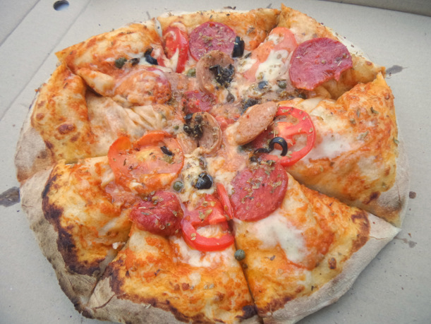 The pizzas are cheap and easy on the pocket. The pizzas come in only one size but basically one is all you need – very filling! The cooking or dough preparation process needs a bit more work as the pizza tends to puff up a bit. Toppings tend to get pushed to the center. In general the pizzas are soft and chewy but a bit soggy in the middle. The tip of the pizza tends to flop down while eating spilling cheese and toppings.