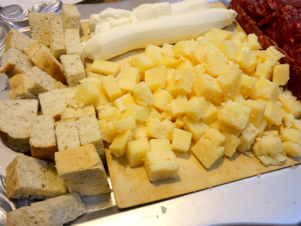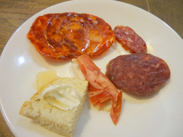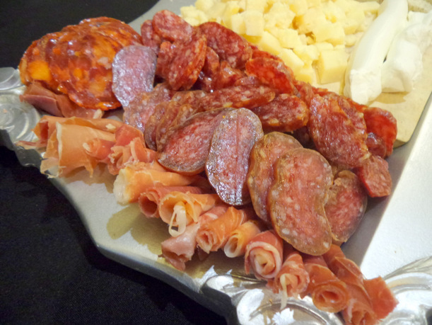 Paired with the wine were imported cheeses and slices of ham and chorizo. These were also brought over by the Tomador company and are now available at Delicioso. Platters of these were served to the guests.