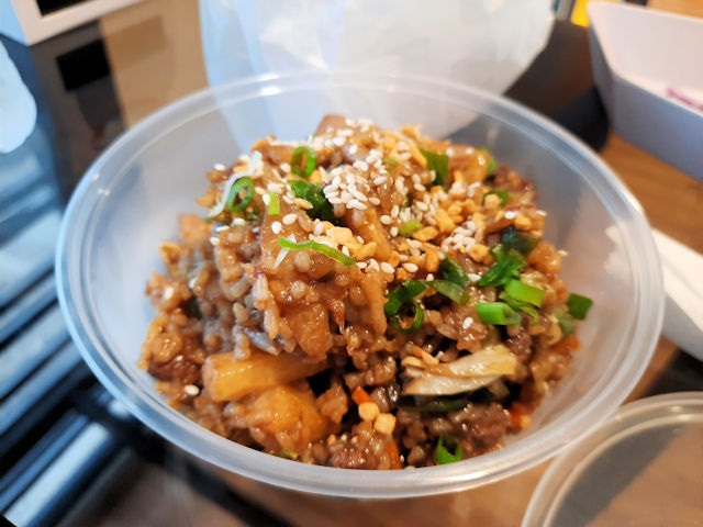 For vegans -There’s also a vegetarian option. We picked a beef bowl with the house special Bowlero sauce which is Sweet, Mildly spicy and a bit garlicky.
