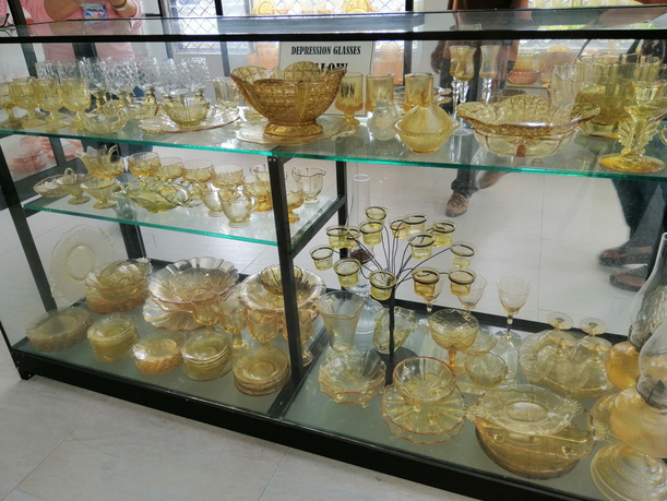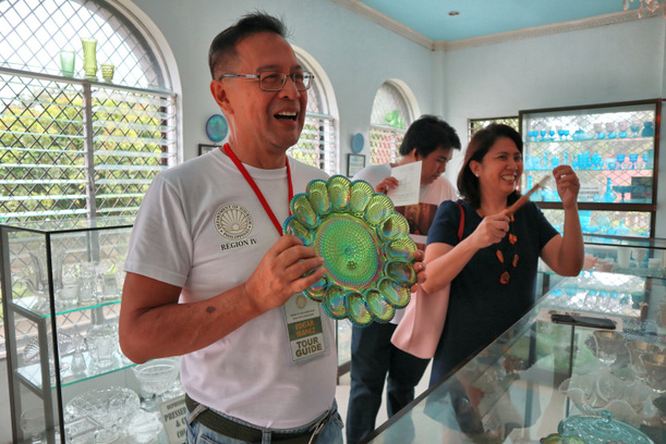 We were given a short crash course by Mr. Casiano on how to identify genuine Carnival glass. Fake Carnival glass is painted and the paint will easily wash off. Genuine Carnival glass has distinct and beautiful color patterns when you hold them up to the light.