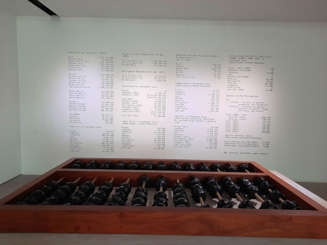 A huge art display on the second floor of The Orange Project has a wall printed with the number of deaths from each country in Asia, Philippines included. There’s a huge abacus right in front of it with instructions how to use it.