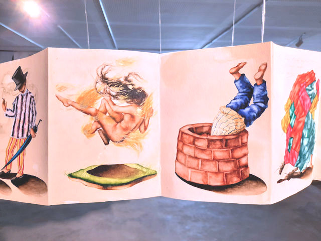 Besides the paintings, there are also other multi media displays and art installations (depending on the artist displaying in Block 17 Art Space. When we visited we saw a display of an artists journals.