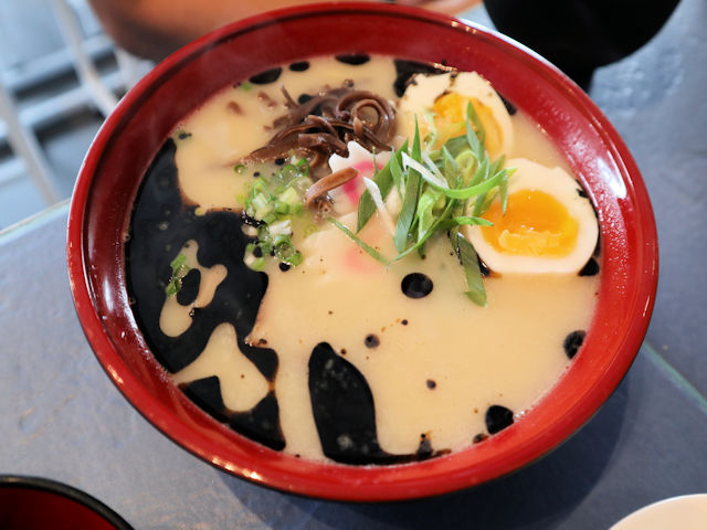 The Ramen was okay. it had preserved bamboo shoots, onion, chives, a boiled egg, fish sausage and plenty of black garlic oil. Very affordable for the price. It was nice to have some hot soup with our meal.