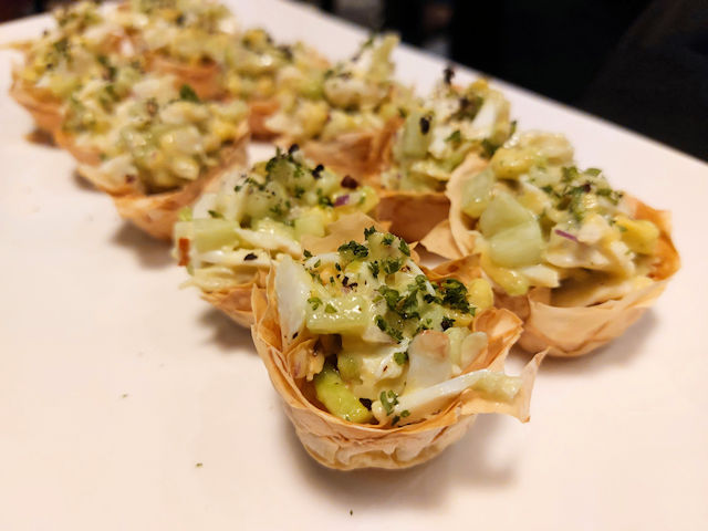 Crab Salad in Crispy Filo cups – A delicious, light and flaky seafood Salad served in pastry bowls. Refreshing!