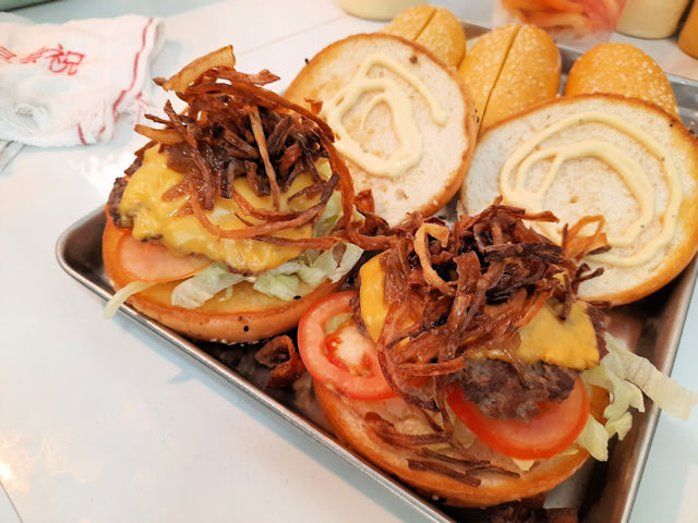 My burger of choice when we’re at Hotbox kitchen is their Cheeseburger. It tastes oddly familiar – that’s because the owner wanted to do an upscale take of something familiar – he took the inspiration from the McDonald’s cheeseburger.