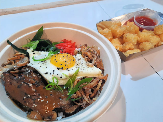 Our current favorite at Hotbox Kitchen Bacolod are their awesome Loco Moco Bowls! They are absolutely loaded with stuff! You get an angus beef patty, rice, wakame seaweed, pickled ginger, furikake, fried mushrooms and crispy onions!