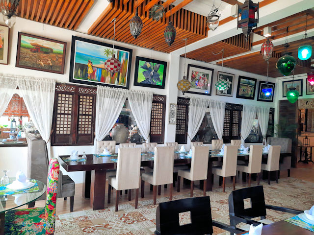 The biggest dining table at Casablanca Restaurant Bacolod is a long table that can comfortably seat fourteen people! It’s right beside the beautiful interior capiz shell windows.