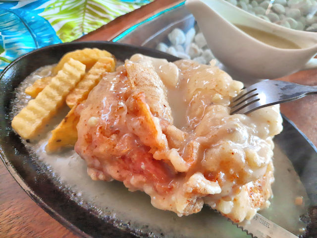 For chicken we tried CasaBlanca Restaurant Bacolod’s Sizzling Chicken. The dish consists of a large piece of chicken but breaded and fried. It came with a gravy sauce and a few fried potatoes as garnish.