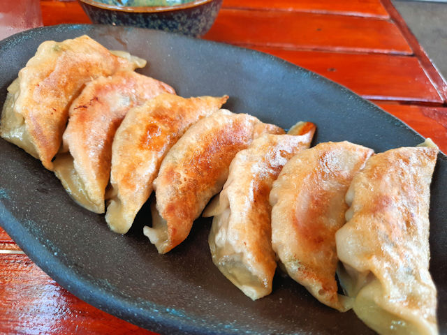 Gyoza are Japanese pan-fried dumplings and they are a very popular dish. Subrashii has nice crispy Gyoza that are a great complement and side dish to their ramen.