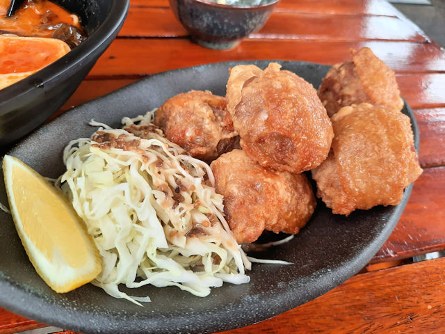 We’ve always liked Chicken Karaage and the Karaage at Subarashii is right up our alley. It comes with a side salad of Cabbage with Kewpie sesame dressing plus a Japanese mayo and mustard sauce. Simple and delicious.