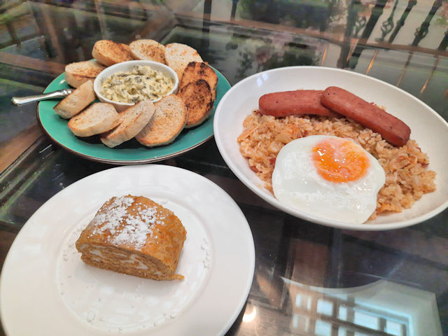 Here’s what we got for lunch! We ordered the popular Hot Spinach Dip and to make things a little more “international”, we picked the Kimchi fried rice and one of the popular very first dessert we ever tried at Tiffany’s Confections – the Kalabasa cream cheese roll.