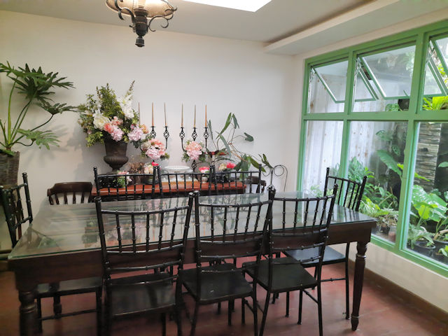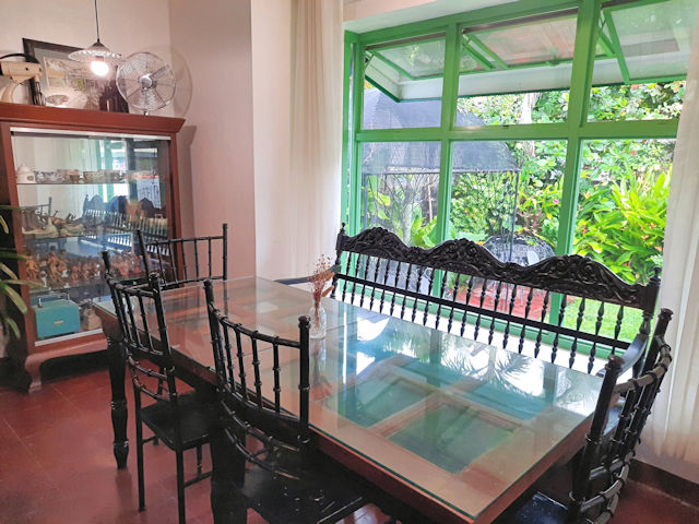There’s a large dining table right beside the entrance to Tiffany’s Confections. This spot has a nice view of the gazebo and the garden. Notice anything different? This table is super unique as it is made from a door! They just placed a plate of thick glass on it. Very creative and very remarkable! There’s also a curio cabinet right beside the table where you can see the owner’s collection of curios and knick-knacks.