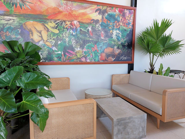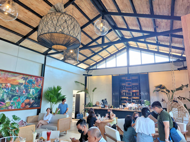 The interior of Lanai is simple and uses a lot of white and wood accents to give a relaxing feel. There are several palm plants in the interior which creates a tropical atmosphere.