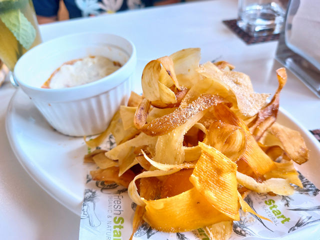 We started with Lanai’s appetizers – we picked their camote chips served with a Chorizo dip made with Negros Chorizo, Kale, Garlic yogurt, local cheese and camote chips.