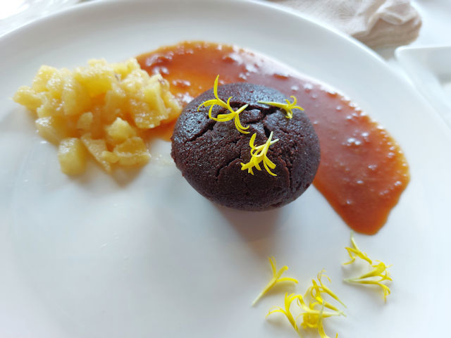 For dessert we had a very interesting Criollo Tablea Cake from Lanai by Fresh Start. It came with a side of, carabao milk dulce de leche and a pineapple compote. It also came with a sprinkling of edible flowers. Designed by Chef Gab Melocoton, this showcases the creativity of the food created by the Slow food movement.