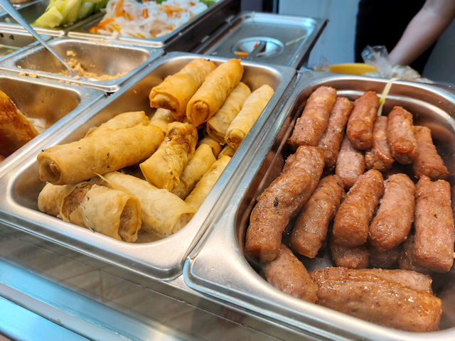 You can have vegetarian, crispy chicken, chicken ham, and Vietnamese ham along with pork sausage and roasted pork… that’s just to name a few.