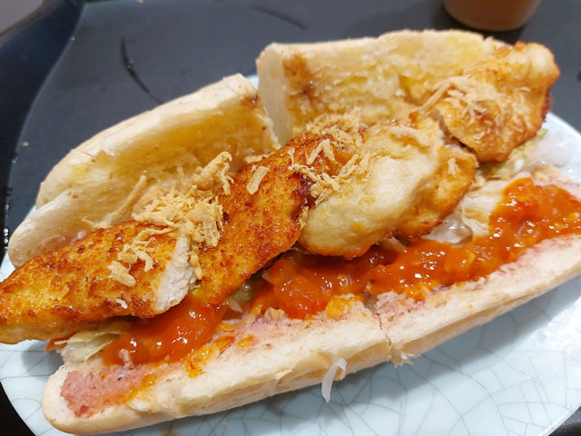 The next sandwich that we got from Xin Chào was their fried chicken fillet sandwich! Deep fried pieces of chicken with the same egg butter, meat paste and vegetables. Ask them to make it spicy (its not that spicy) for a nice kick in flavour.