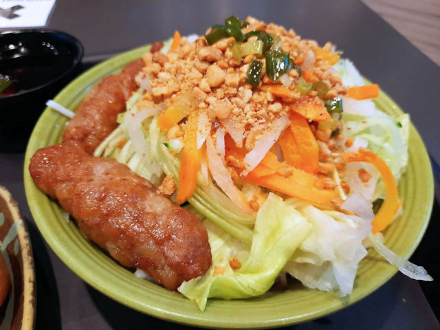 For salads, try the Bún Thit Nuong. This rice noodle salad is full of vegetables and has whatever toppings you desire – we chose to have the Vietnamese sausages on this one. Very good and extremely filling.