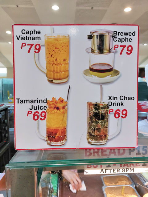 You should also try the drinks at Xin Chào Vietnamese Food Bacolod! Xin Chào currently has four drinks but our favorite drink the Tamarind Juice was not available. We had to settle instead for the Xin Chào drink which is Jell-O and Chia seeds. We also got iced Caphe Vietnam – an iced coffee drink.