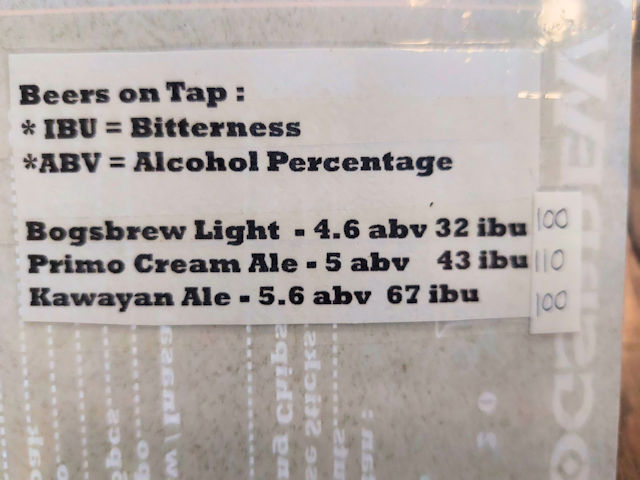 There are currently three craft beers on tap at BogsBrew HQ. There’s Bogsbrew Light with the smallest bitterness and alcohol percentage. The next is the Primo cream ale – a crowd pleaser and perfectly balanced beer. The strongest beer that Bogsbrew HQ has on tap is the Kawayan ale with an ABV of 5.6 and a 67 ibu.