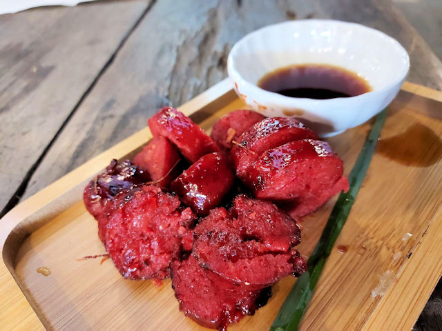 Cripy luncheon meat chips and a sweet chili sauce round off the selection of bar food that we ordered!