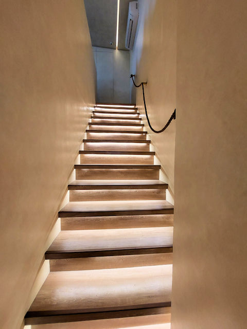 The second floor dining area is only for big groups that have a reservation. The stairs leading up to the second floor is very pretty and has bright LED lighting.