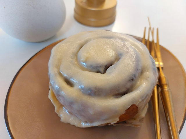 Cinnamon bun with frosting. Very good and one of Gorda’s most popular desserts.