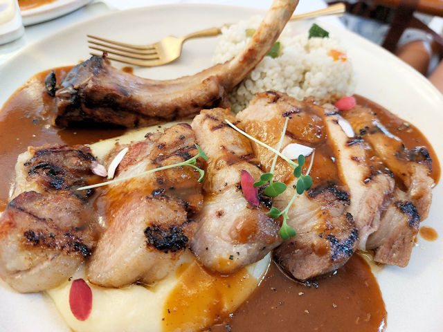 Another great dish is the Grilled Bacon chop. It comes with gravy, mashed potatoes and a side of adlai. Nice!