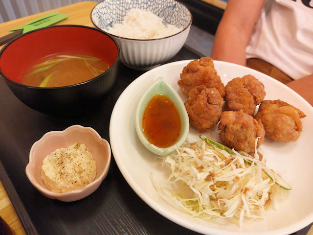 We began ordering the dishes that they have on the menu. Umami has a lot of Japanese dishes but if its your first time we recommend trying the dishes that come with a set. For the first set, we ordered chicken Karaage. The set comes with a Cabbage salad, Potato salad, Miso soup and rice.