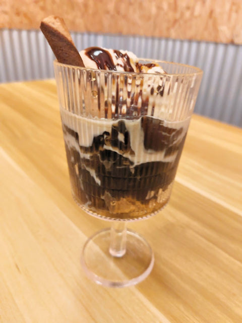 For dessert we had the dish of Coffee parfait. It has two scoops of vanilla ice cream, coffee jelly, milk and chocolate syrup.