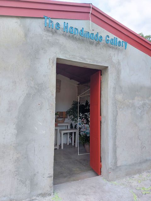 The entrance to The Handmade gallery is simple. Once inside the gate, you are greeted with lots of plants and ceramic tiles on the walls and around the doors.
