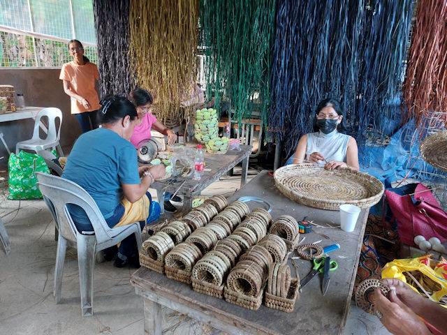 The showroom is just a small part of The Handmade Gallery. We took a look at the back area where Artisana Island crafts has their factory. Artisana Island crafts employs women from rural communities to weave the bags, mats, trays and handicrafts.