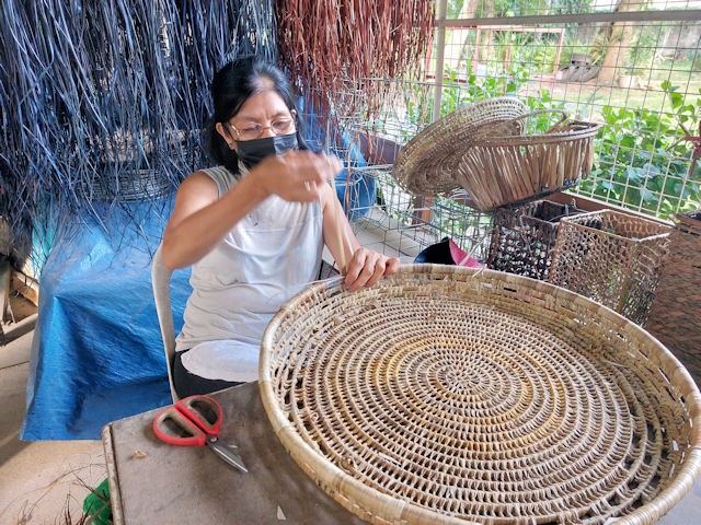 The women weave pandan leaves harvested from Kanlaon mountain. Among the baskets, they weave the distinctive ceramic tiles.