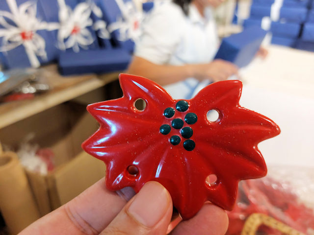 Instead of just tying the ribbon in place, you can opt to use Artisana Island Crafts ceramic ribbon holders in the shape of a poinsettia