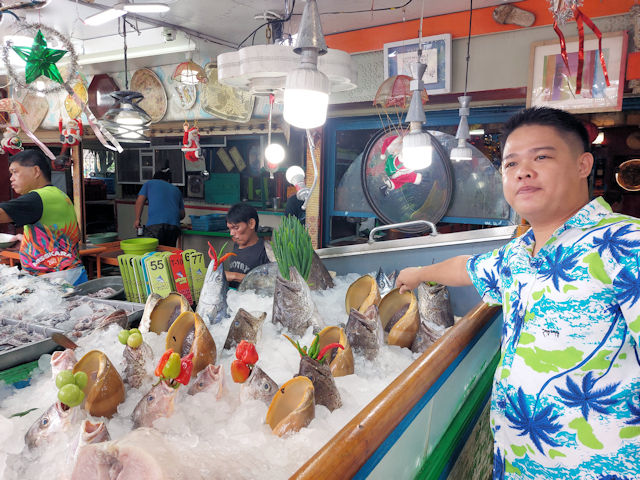 The outside of Diotay’s Seafood Eatery is very colorful and striking with lots of decorations and lights on display. The most eye-catching scene is the fish section with plenty of ice.