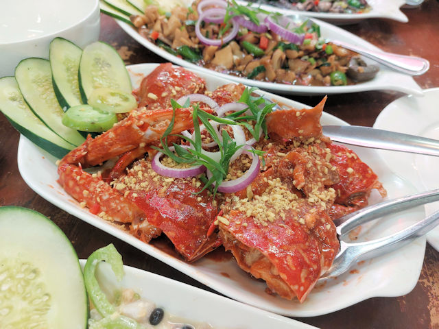 Diotay’s seafood eatery has sweet chili crabs with plenty of garlic! The crabs come pre-cracked in half and the chili sauce is poured liberally over it.
