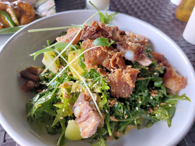 If you’re new to eating Paco Paco salad, the ferns are slightly more fibrous than normal vegetables but still tender and good to eat. The Salad dressing makes the ferns super tasty and if you pair it with the crispy pork, it’s a heavenly match.
