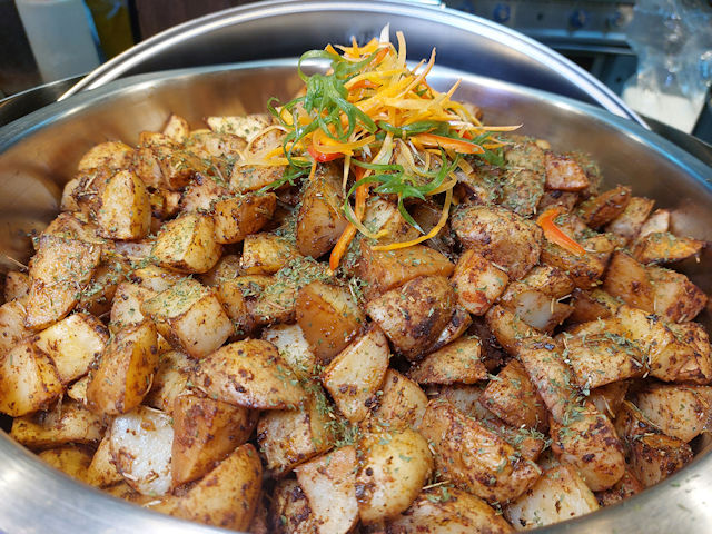 We didn’t want to eat too much rice, so we were delighted when we found herbed potatoes at the buffet. The herbed potatoes are fried cut-up chunks of potatoes mixed with herbs and seasonings. This goes well with the many fish dishes!