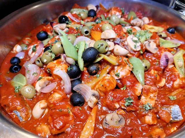 The buffet also had Casserole of Marlin and Salmon. This dish has European influences. A Casserole is food cooked in a large, deep pan or bowl in the oven.