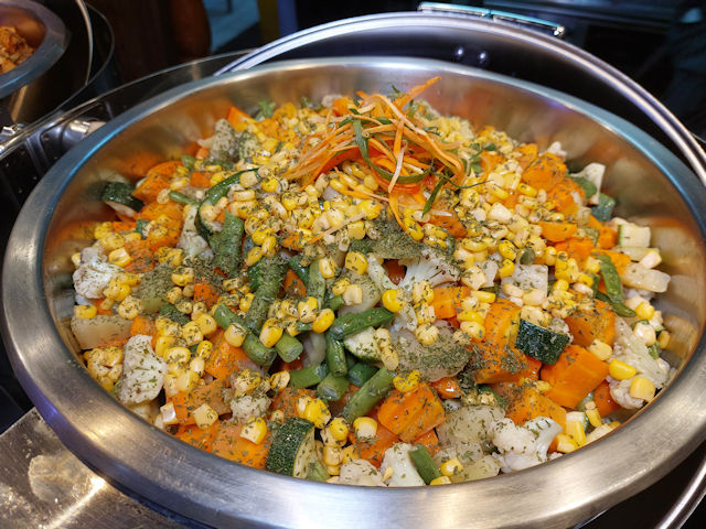 Another excellent alternative to having rice at L’Fisher Hotel’s Buffet was their huge dish of buttered corn, carrots, chayote and beans. Super nice.