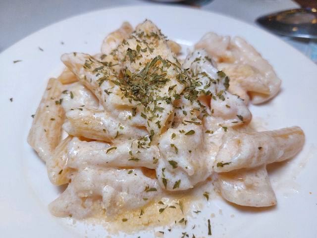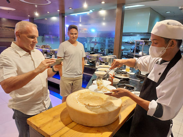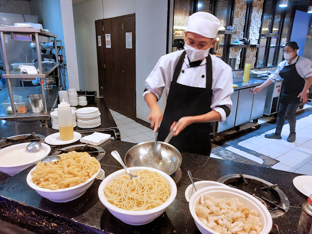 You have to experience the pasta station at L’fisher Hotel! A staff member from Ripples Restaurant cooks your pasta dish right in front of you. This time it was a creamy seafood pasta.