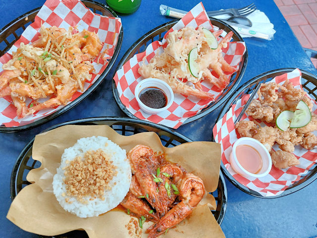 Mr. Squidee specializes in shrimp and squid dishes. They have fried, breaded squid (Calamares), Tempura, Dynamite shrimp, Garlic Shrimp and Squid Sisig. When we arrived they didn’t have the squid Sisig or Okoy available (shrimp cakes) so we had to make do with what they had.
