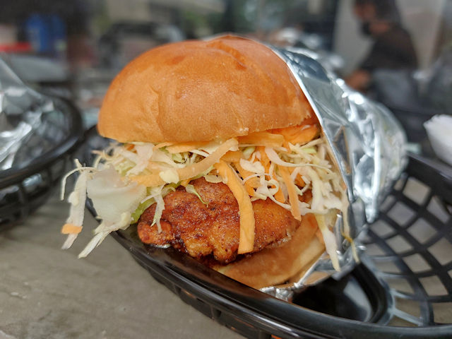 The spicy Nameless chicken sandwich is a huge cut of chicken breast that is battered and deep fried. It is so good! This reminds us of a Wendy’s chicken breast fillet sandwich but without all the extra extenders and breading. This sandwich is Natural and homemade. Burger with no name also puts a lot of shredded cabbage and vegetables on this sandwich. We can proudly say this is one of the best chicken sandwiches in Bacolod city.