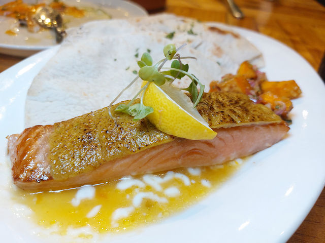 Taverna Bacolod has Pistachio-encrusted Salmon. The salmon is coated with a mixture of pistachio and butter, which gives it a crunchy texture and a nutty flavor. It’s then paired with a tangy citrus-mango yogurt sauce and a side of grilled sweet potato. If you’re not in the mood for rice, you can opt to have it served with pita bread instead. It’s a flavorful and satisfying meal that’s definitely worth a try, especially if you’re a fan of salmon.